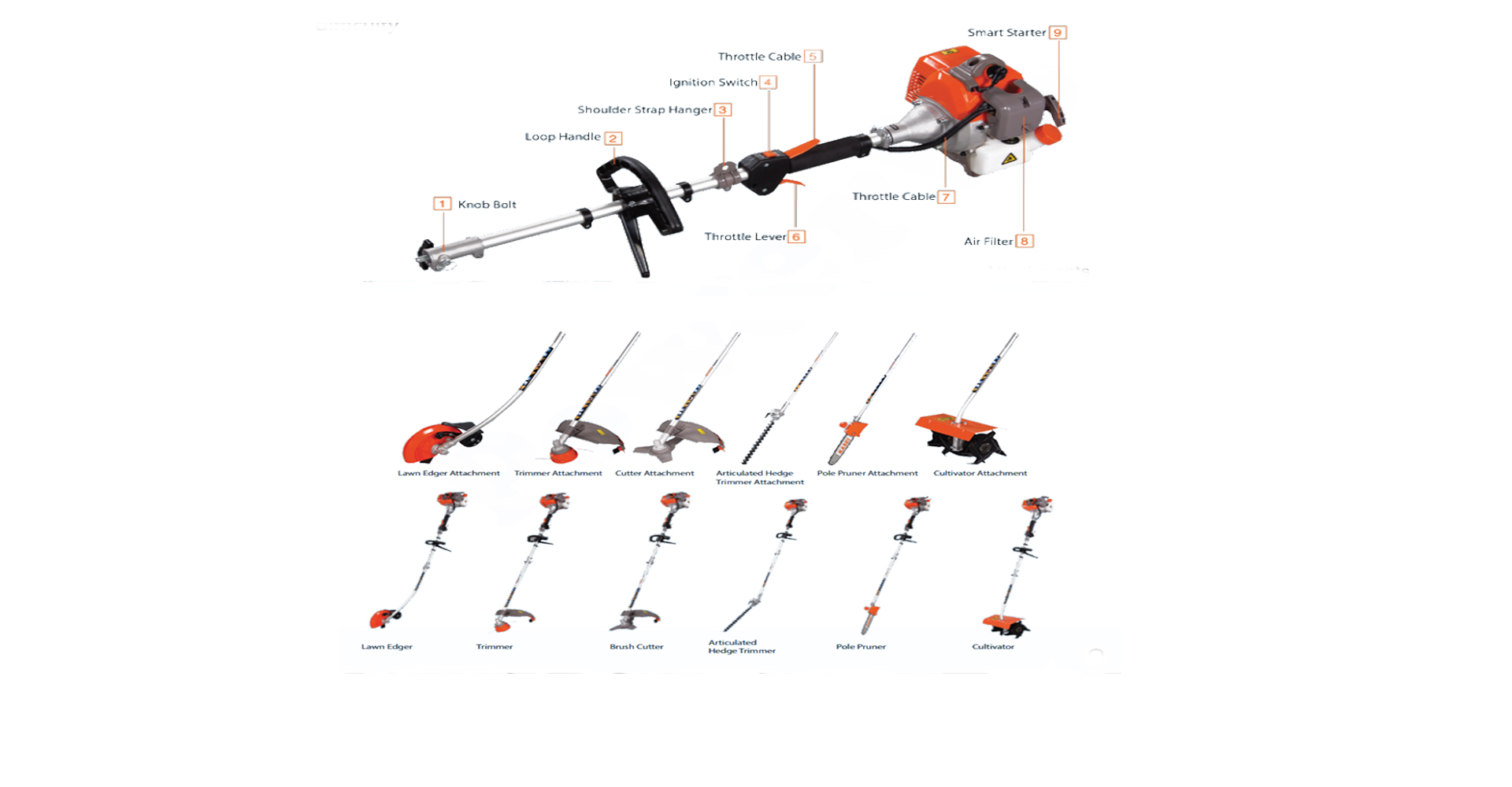 Work Your Whole Garden with One Multi-Tool Machine: A wide range of attachments make these combo trimmers versatile machines that can handle your whole garden: Grass Trimming, Hedge Trimming, Tree Pruning, Edging And Soil Cultivating with one base engine unit. All these attachments can be replaced without difficulty.